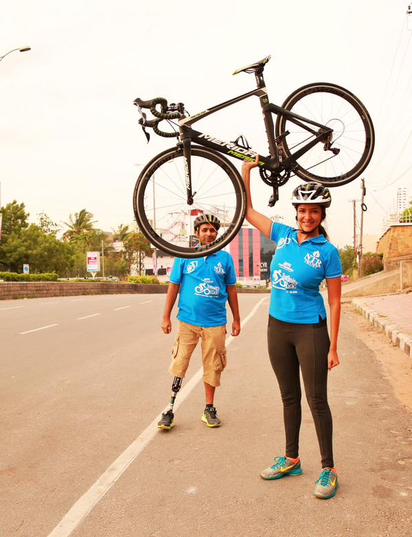 “I am riding on Aug15 to promote the Infinity Ride 2015 to raise funds 4 athletes with disabilities”, says Lakshmi Manchu sharing her picture where she is not riding bicycle but lifting th...